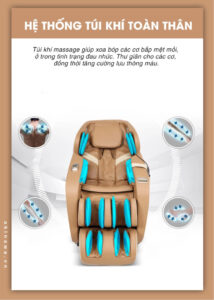Túi khí vai, cánh tay, bắp chân, bàn chân: massage giúp xoa bóp các cơ bắp mệt mỏi, ở trong tình trạng đau nhức. Thư giãn cho các cơ, đồng thời tăng cường lưu thông máu.