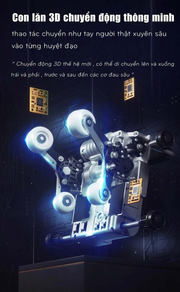 Con lăn 4D của ghế massage OKINAWA OS – 855 chuyển động thông minh có thể di chuyển lên và xuống, trái và phải, trước và sau đến các cơ đau sâu. Thao tác này được mô phỏng như bàn tay một nhân viên massage chuyên nghiệp, bạn sẽ được các con lăn ấn sâu vào từng huyệt đạo tạo cảm giác dễ chịu ngay tức thời cho toàn bộ cơ thể cho bạn.