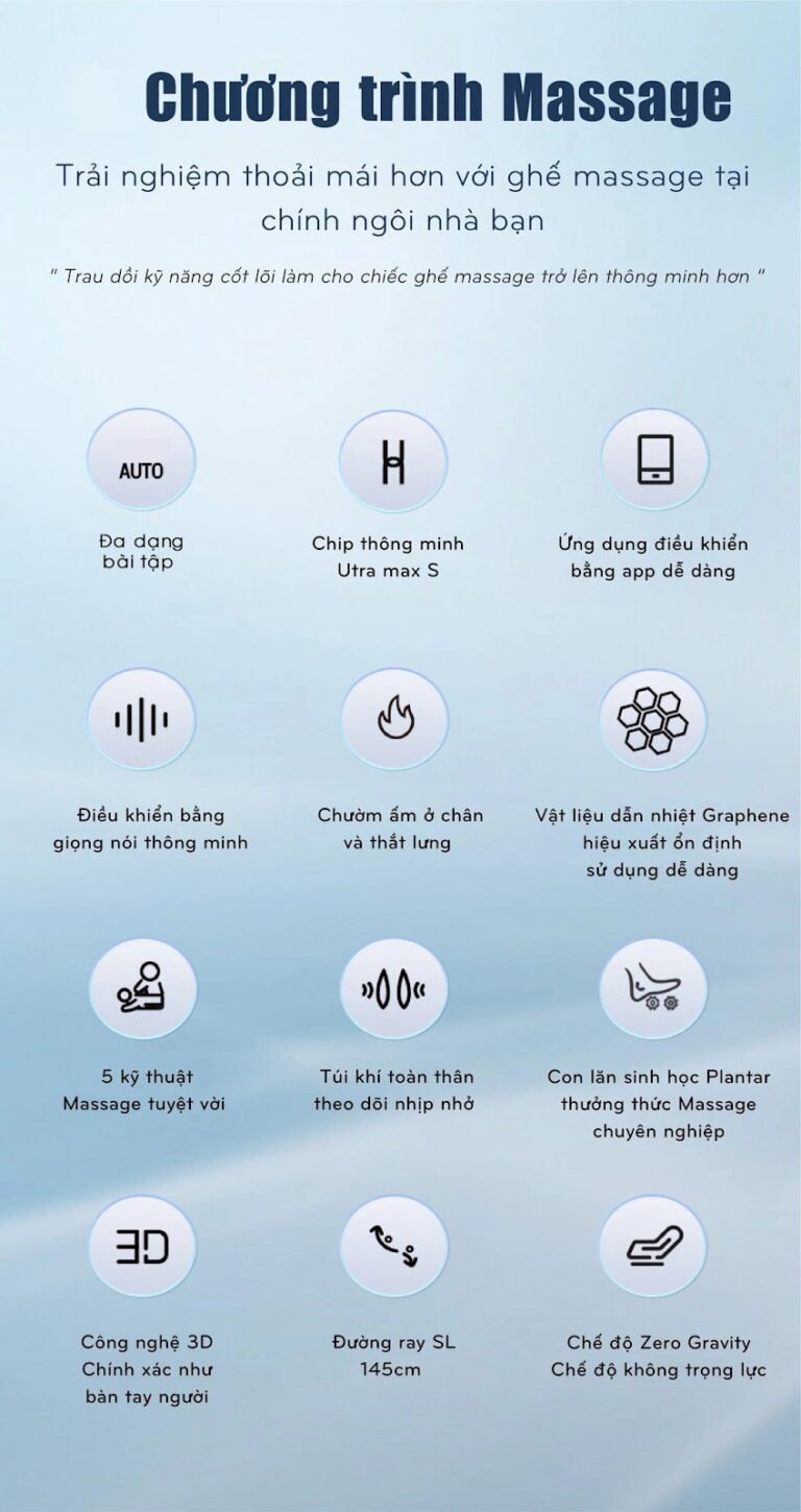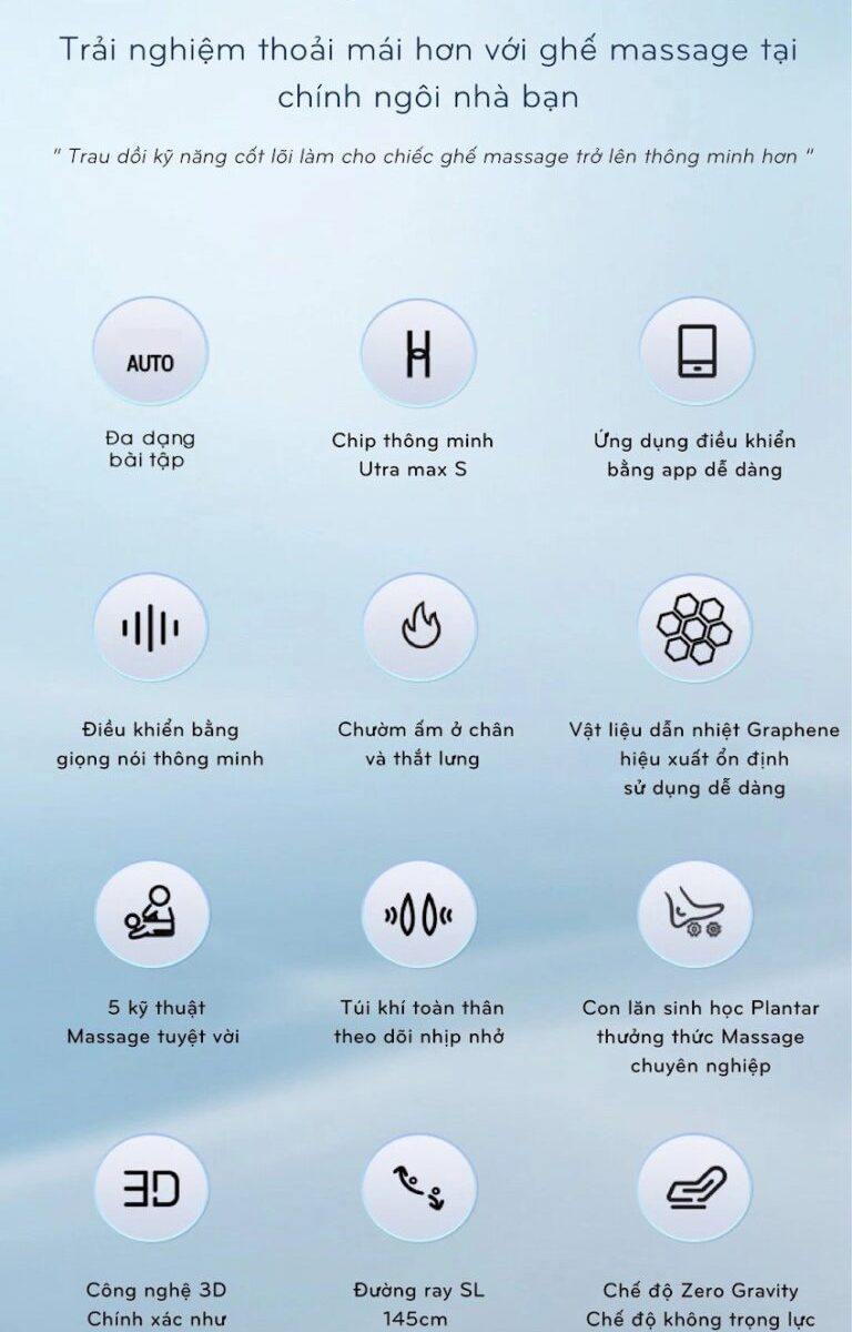 Một chiếc ghế massage thông minh sẽ là một trải nghiệm tuyệt vời trong chính căn nhà của bạn, bởi những tính năng hỗ trợ cho sức khoẻ phù hợp với mọi lứa tuổi, mọi nhu cầu.