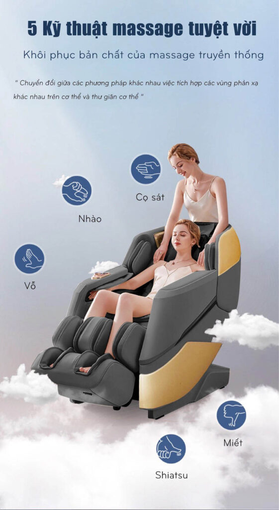 Ghế massage OKINAWA OS – 855 thông minh này còn linh hoạt chuyển đổi giữa các phương pháp khác nhau việc tích hợp các vùng phản xạ khác nhau trên cơ thể và thư giãn cơ thể: cọ sát, nhào, vỗ, miết, shiatsu hỗ trợ thư giãn các cơ, giảm đau nhức, giúp lưu thông khí huyết.