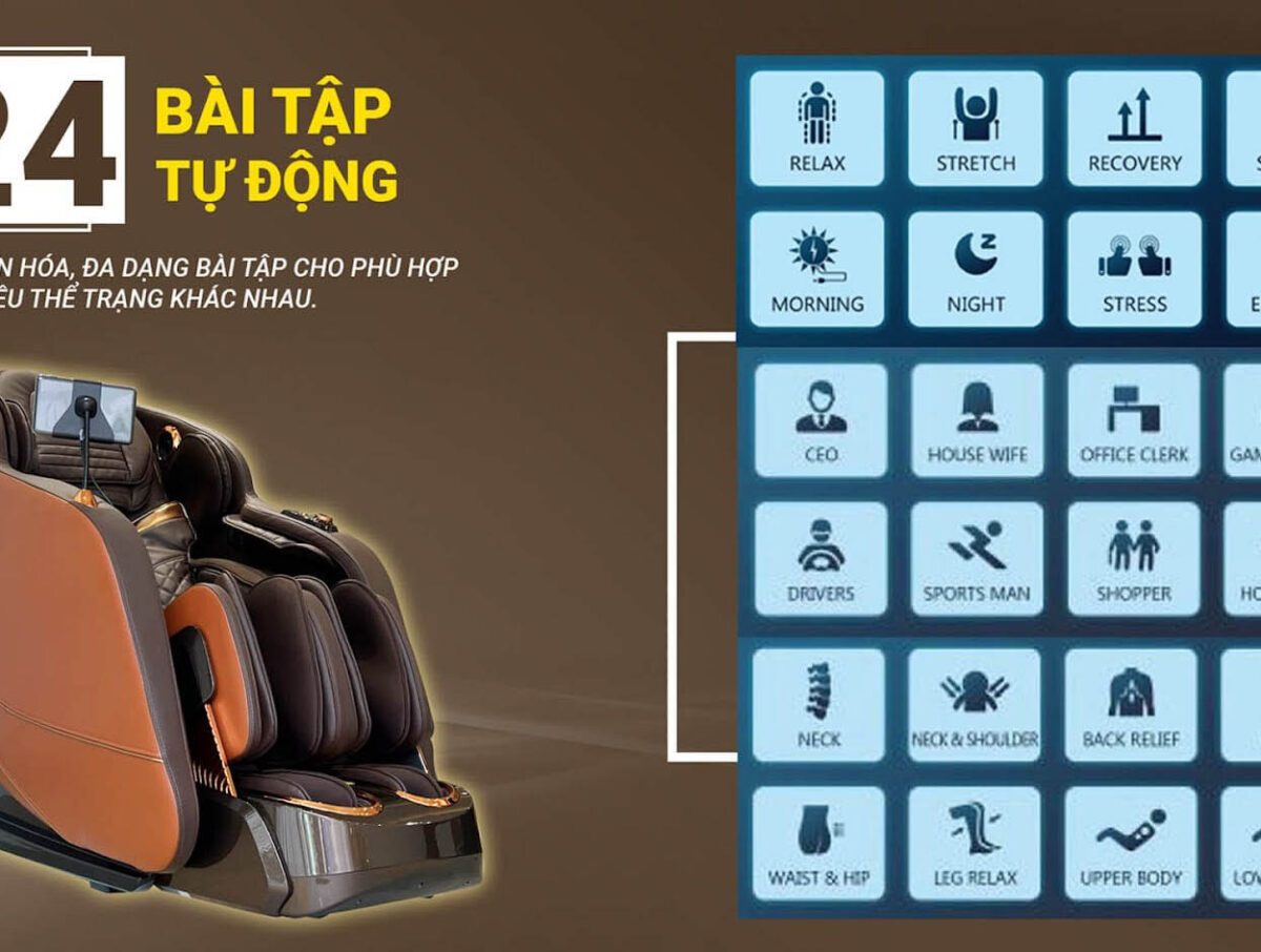 24 bài tập tự động được cài đặt sẵn với các kỹ thuật massage tuyệt đỉnh