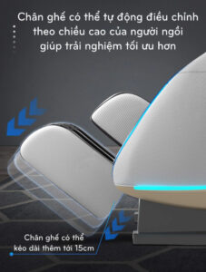 Phần chân ghế có thể kéo dài thêm tới 15cm và tự động điều chỉnh theo chiều cao của người ngồi giúp trải nghiệm tối ưu hơn.